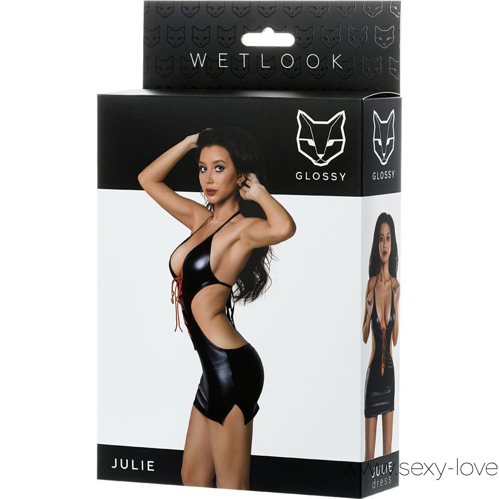 Женское платье «Glossy» из материала с эффектом Wetlook и красной шнуровкой, цвет черный, размер S