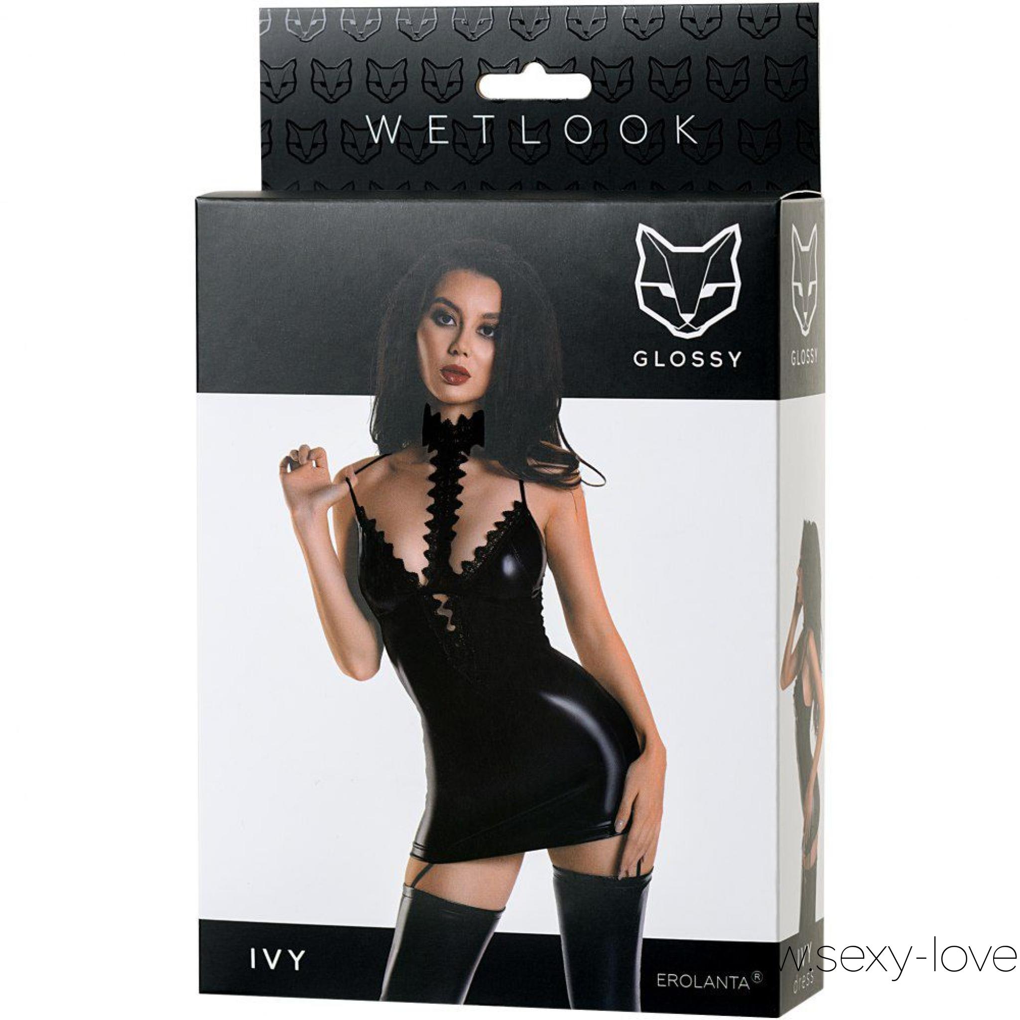 Эффектное платье с чокером и пажами «Ivy» из материала wetlook, черное, размер S, цвет черный