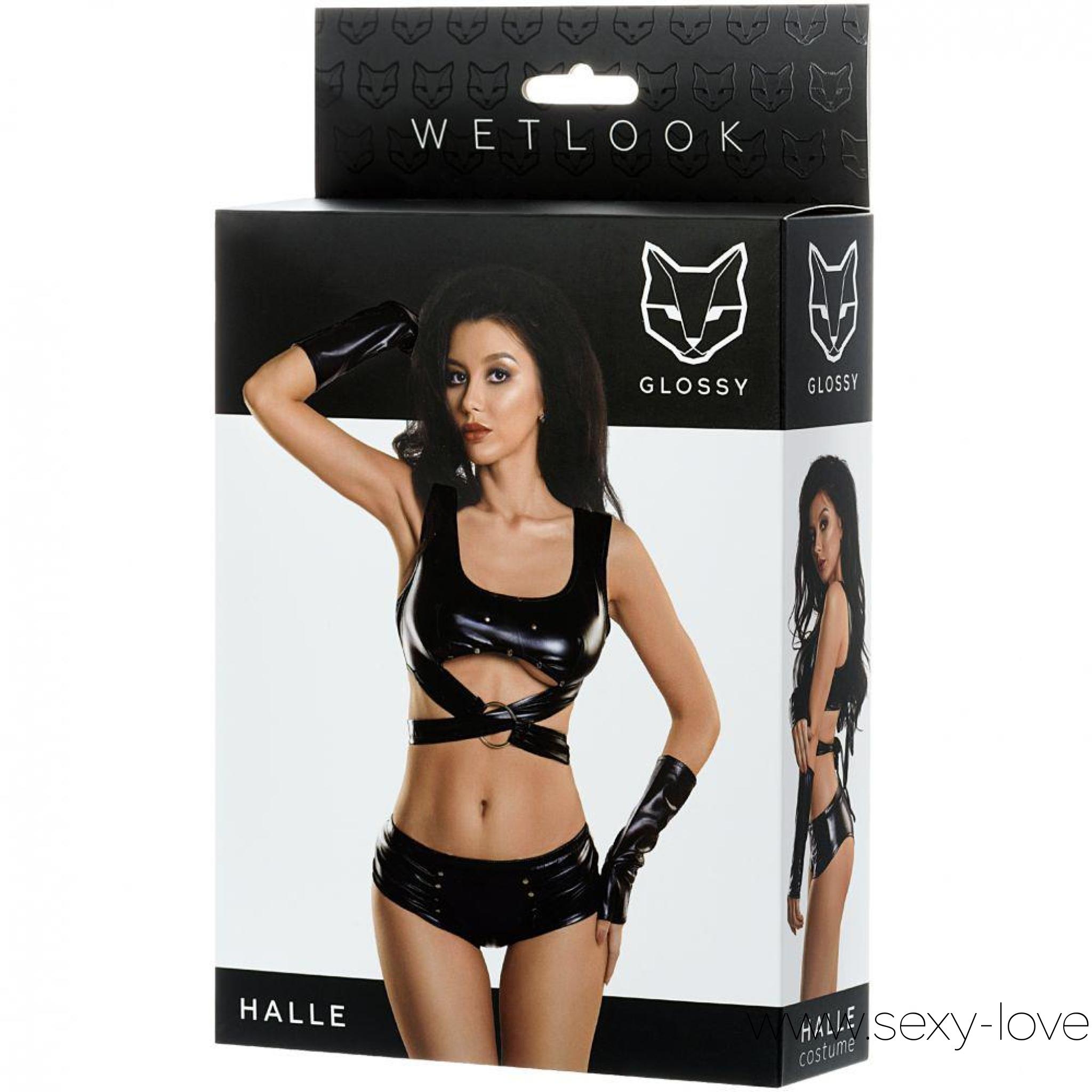 Комплект для женщин «Glossy» из материала с эффектом Wetlook, цвет черный, размер M