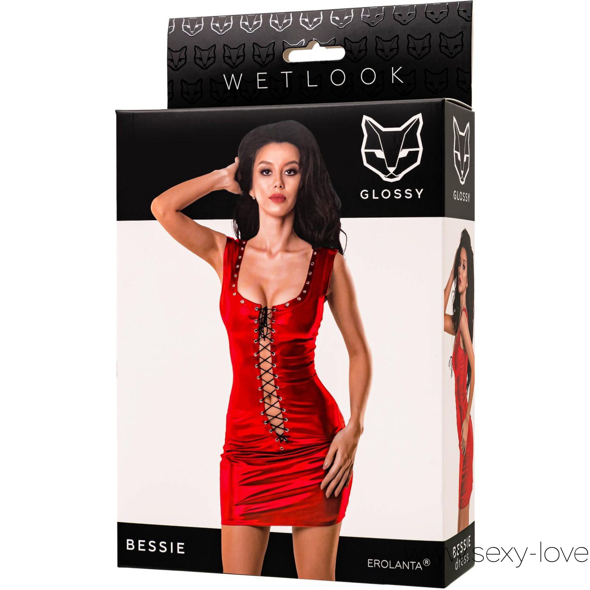 Платье на шнуровке «Glossy Bessie» из материала Wetlook, цвет красный