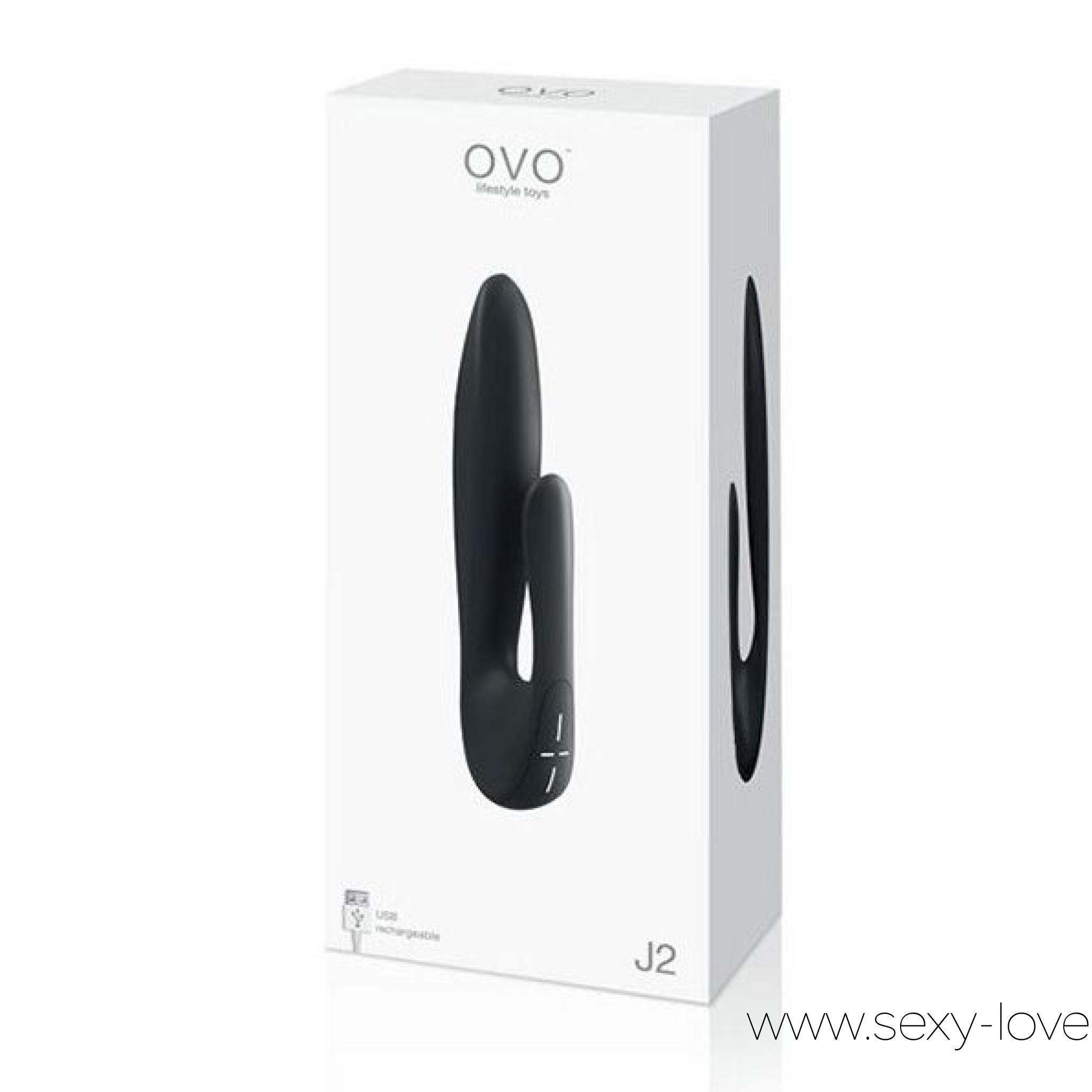 Перезаряжаемый двойной вибратор OVO «J2 Rechargeable Rabbit Rose», цвет розовый, цвет черный.