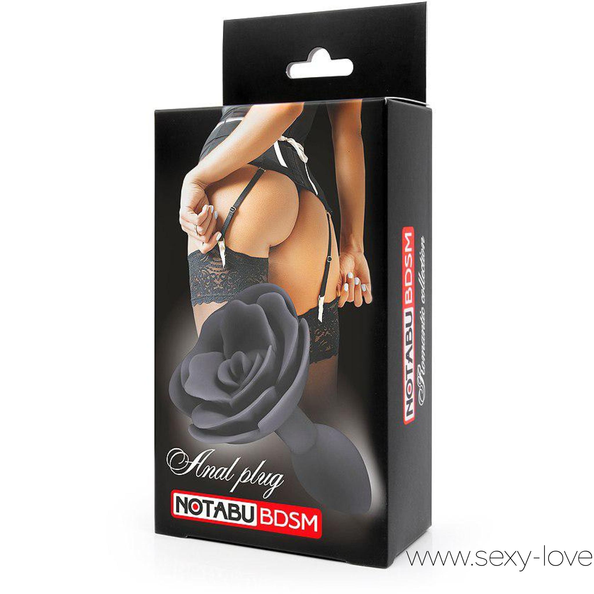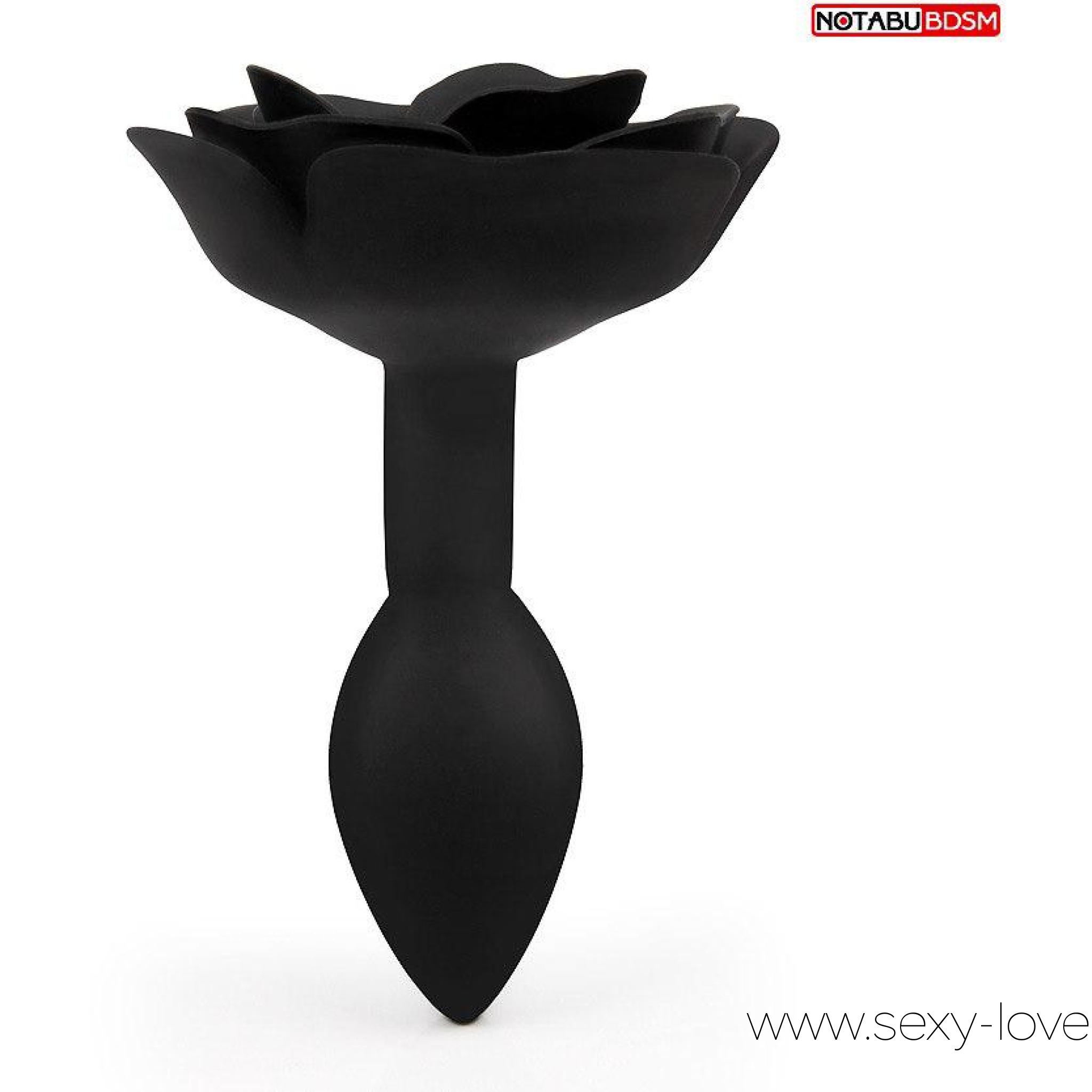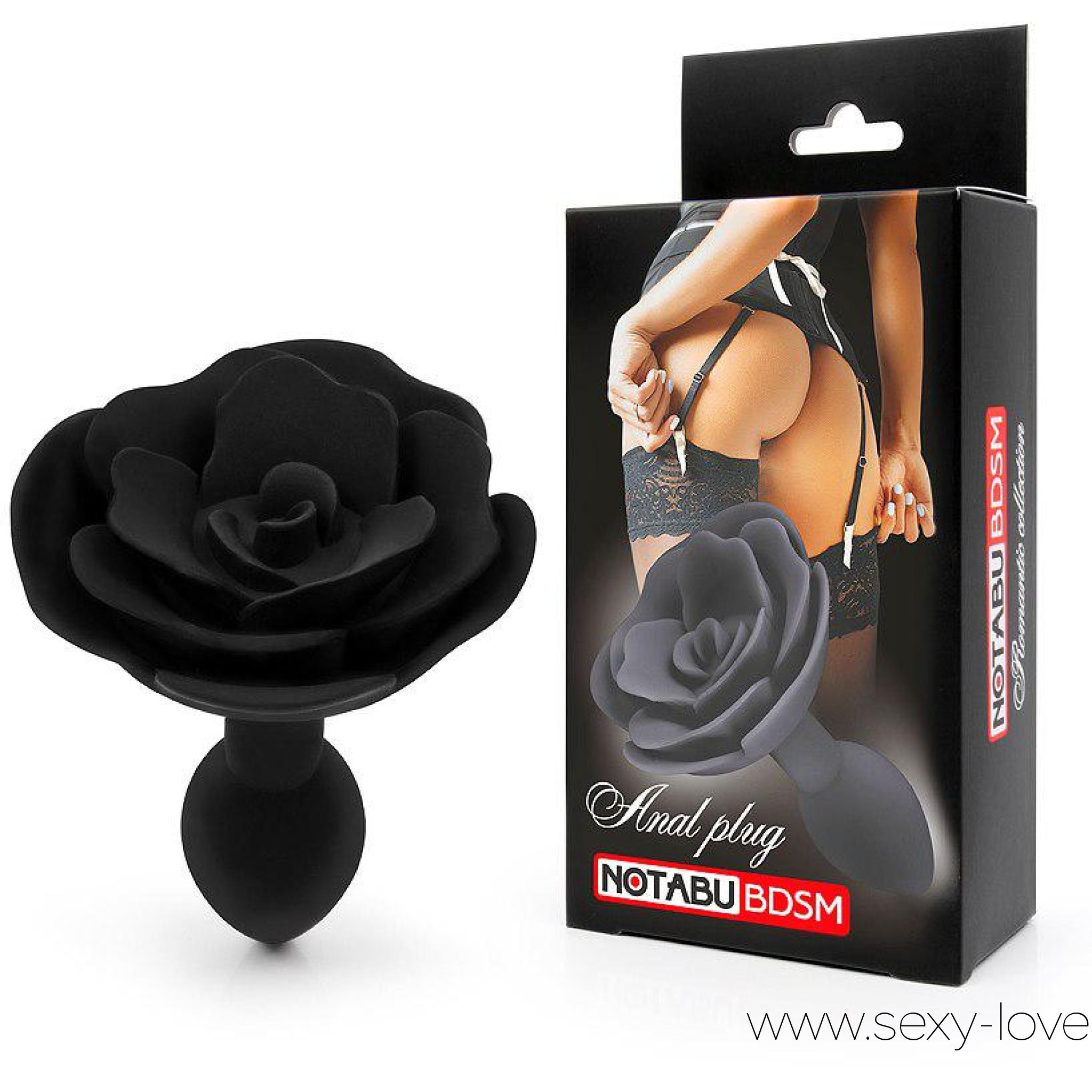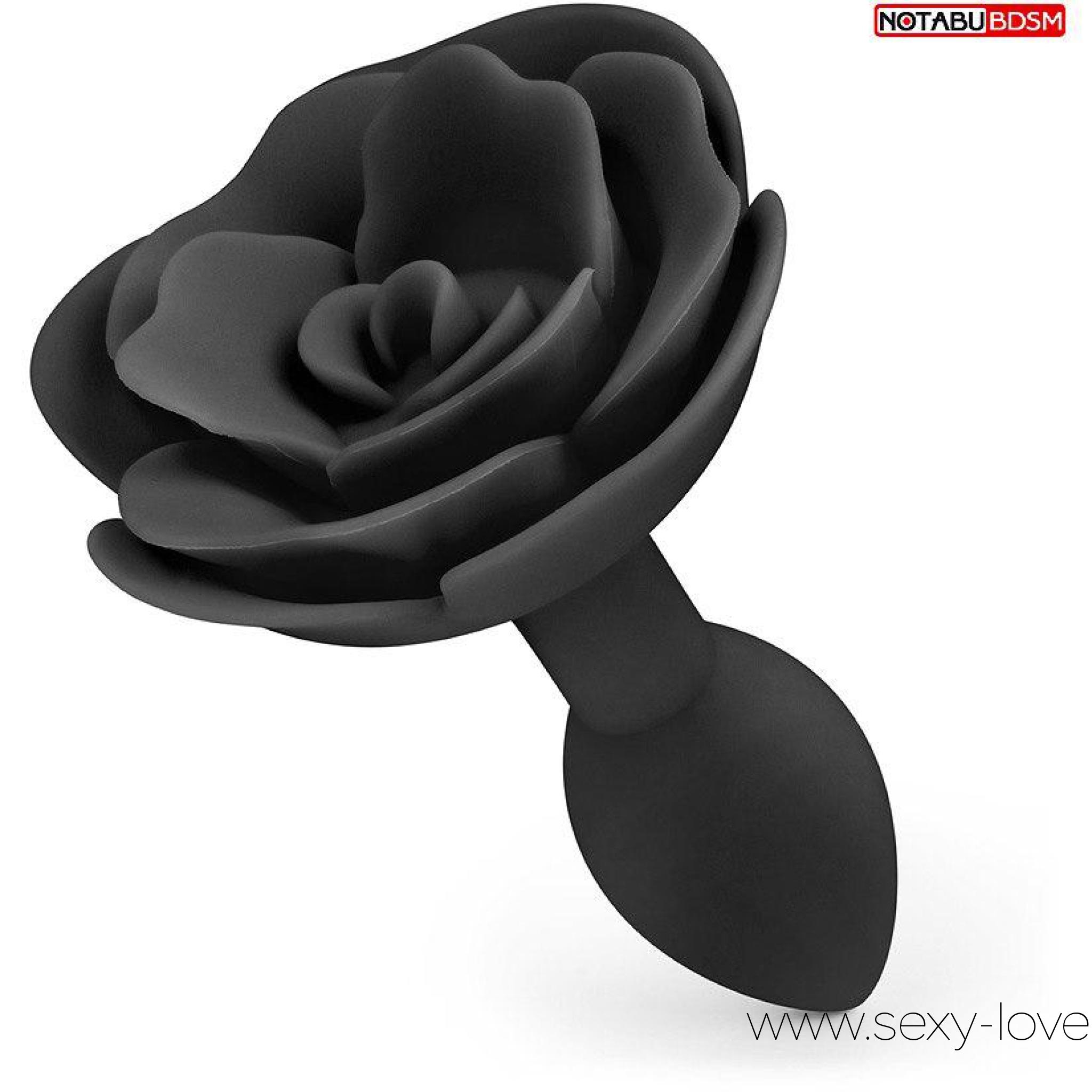 Втулка анальная черного цвета с ограничителем в виде розы, длина рабочей части 8 см, 3 см