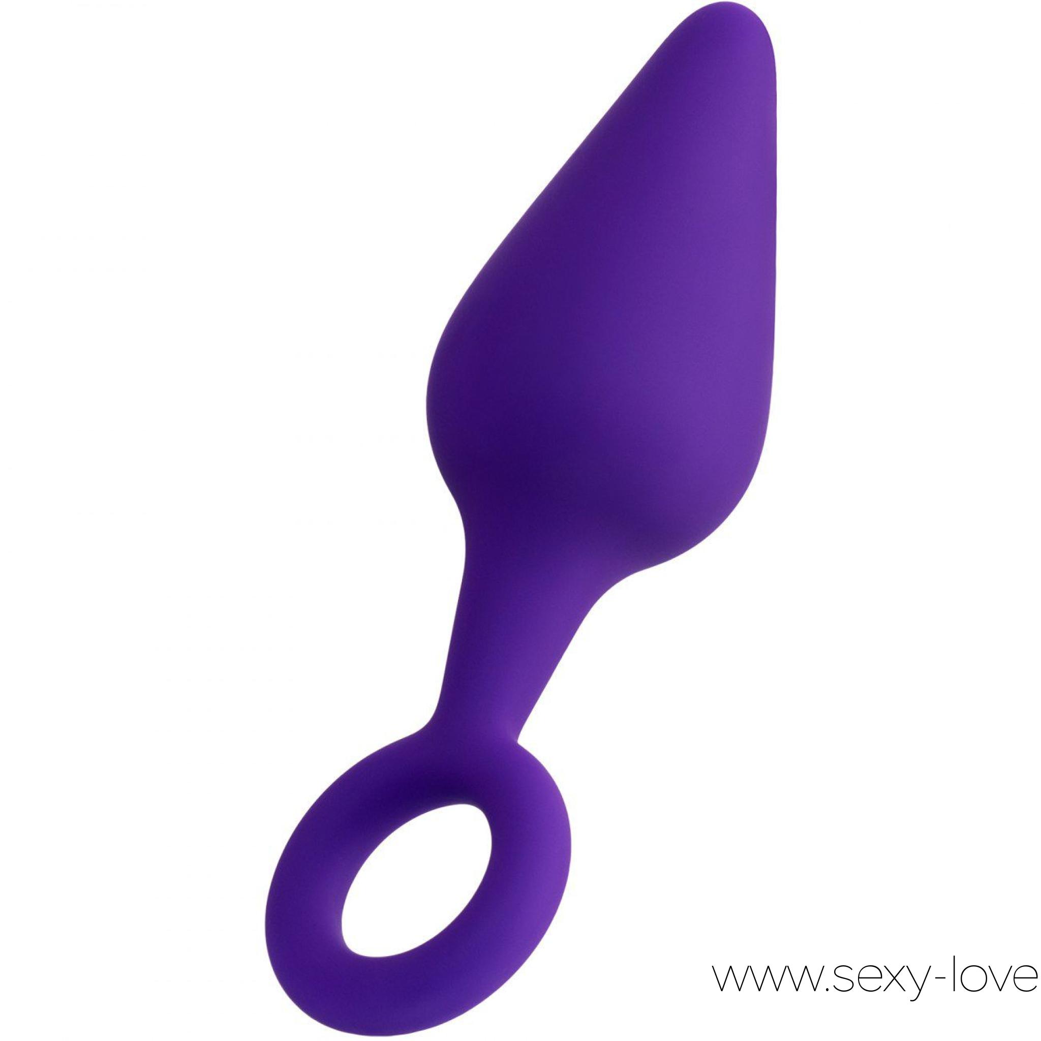 Фиолетовая анальная втулка «Bung» с кольцом для извлечения, рабочая длина 8 см