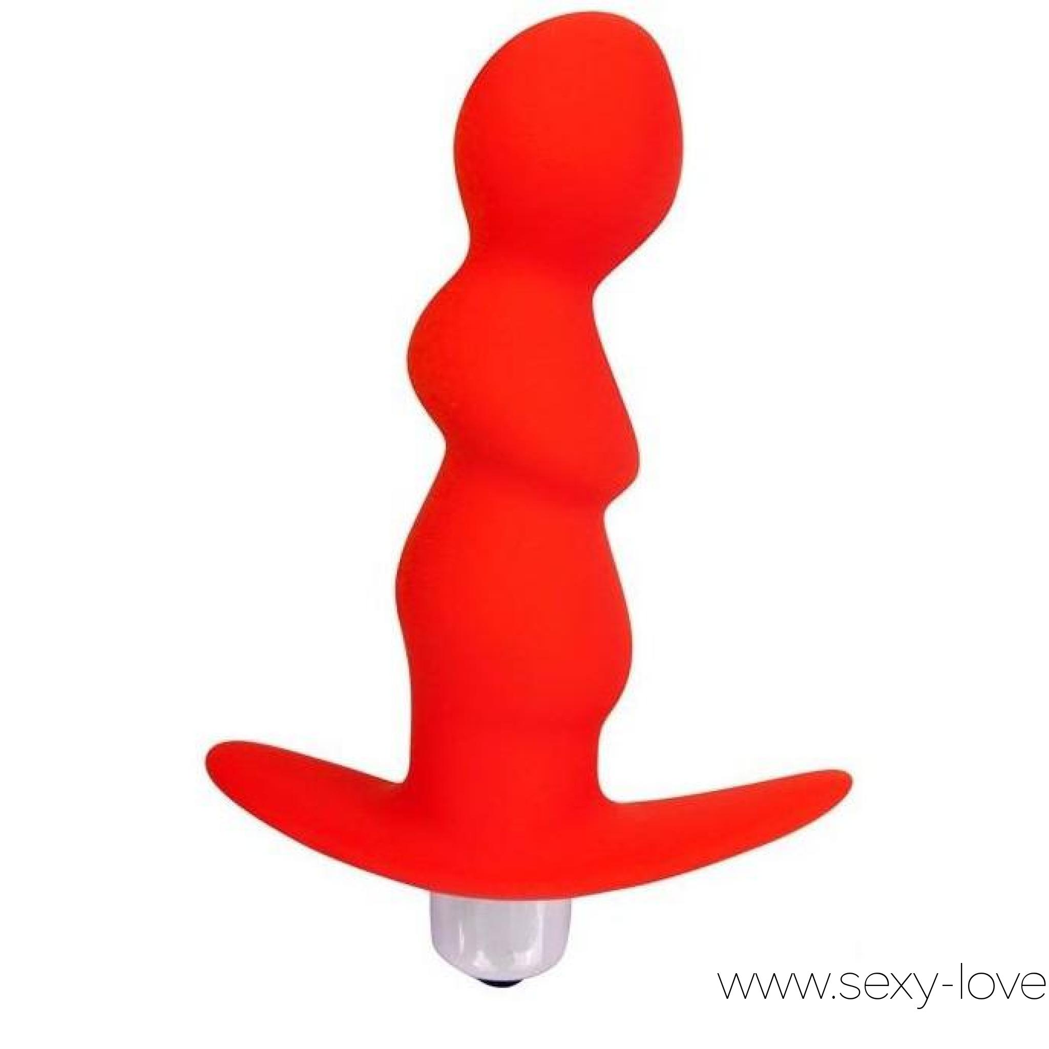 Трехступенчатая анальная пробка-елочка с вибрацией от компании Sweet Toys, цвет красный