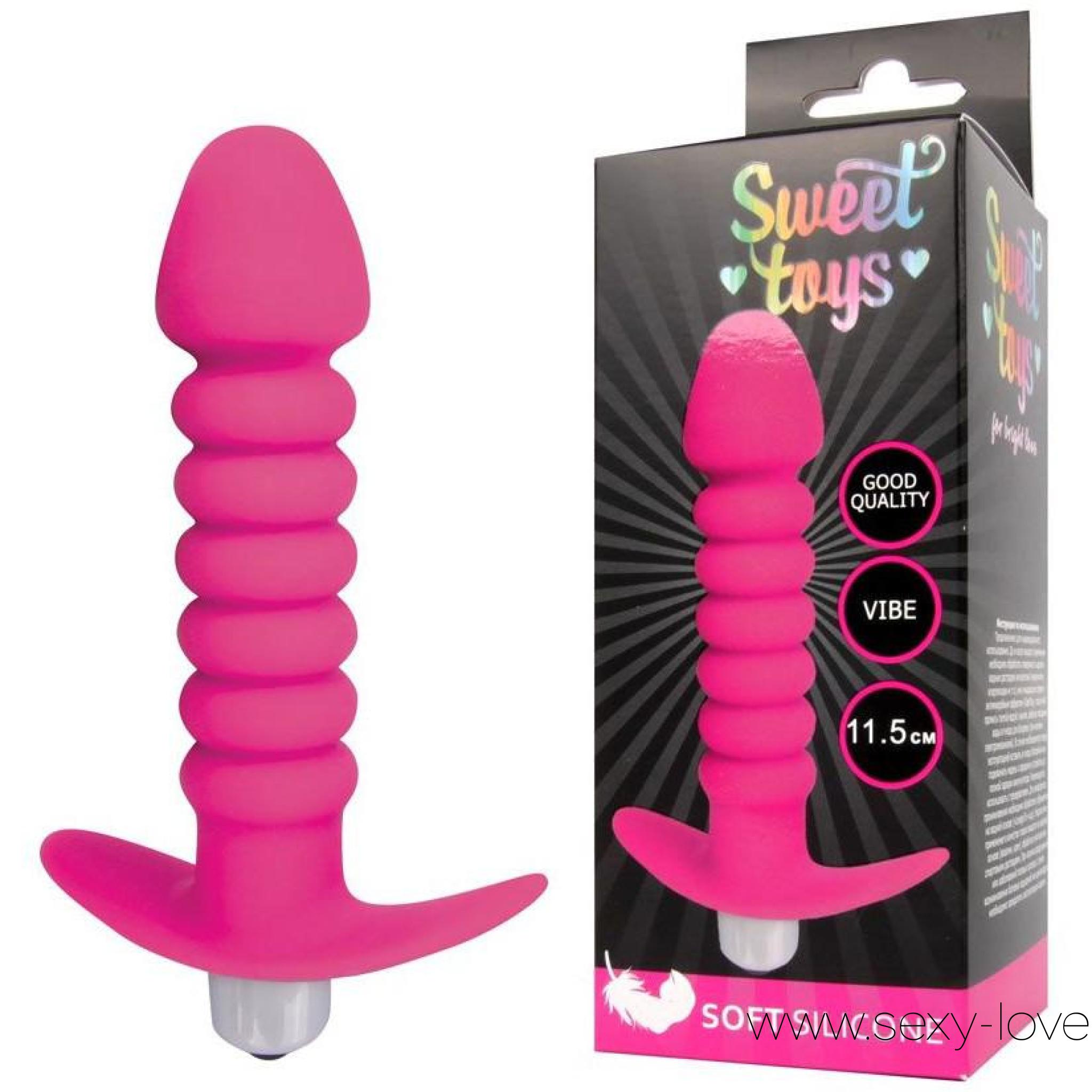 Ребристая анальная втулка с вибрацией от Sweet Toys, цвет розовый
