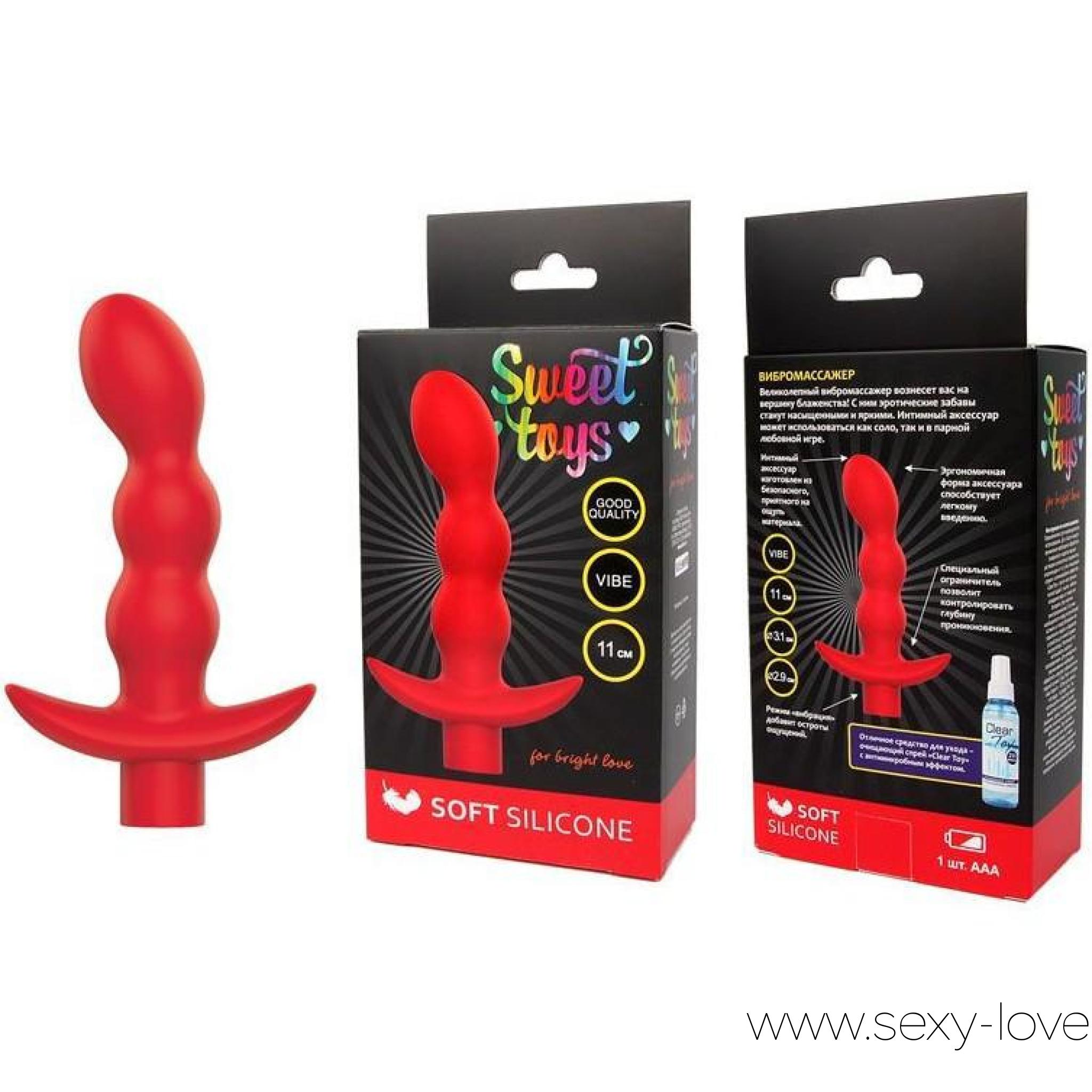 Изогнутый анальный стимулятор с вибрацией от компании Sweet Toys, цвет красный