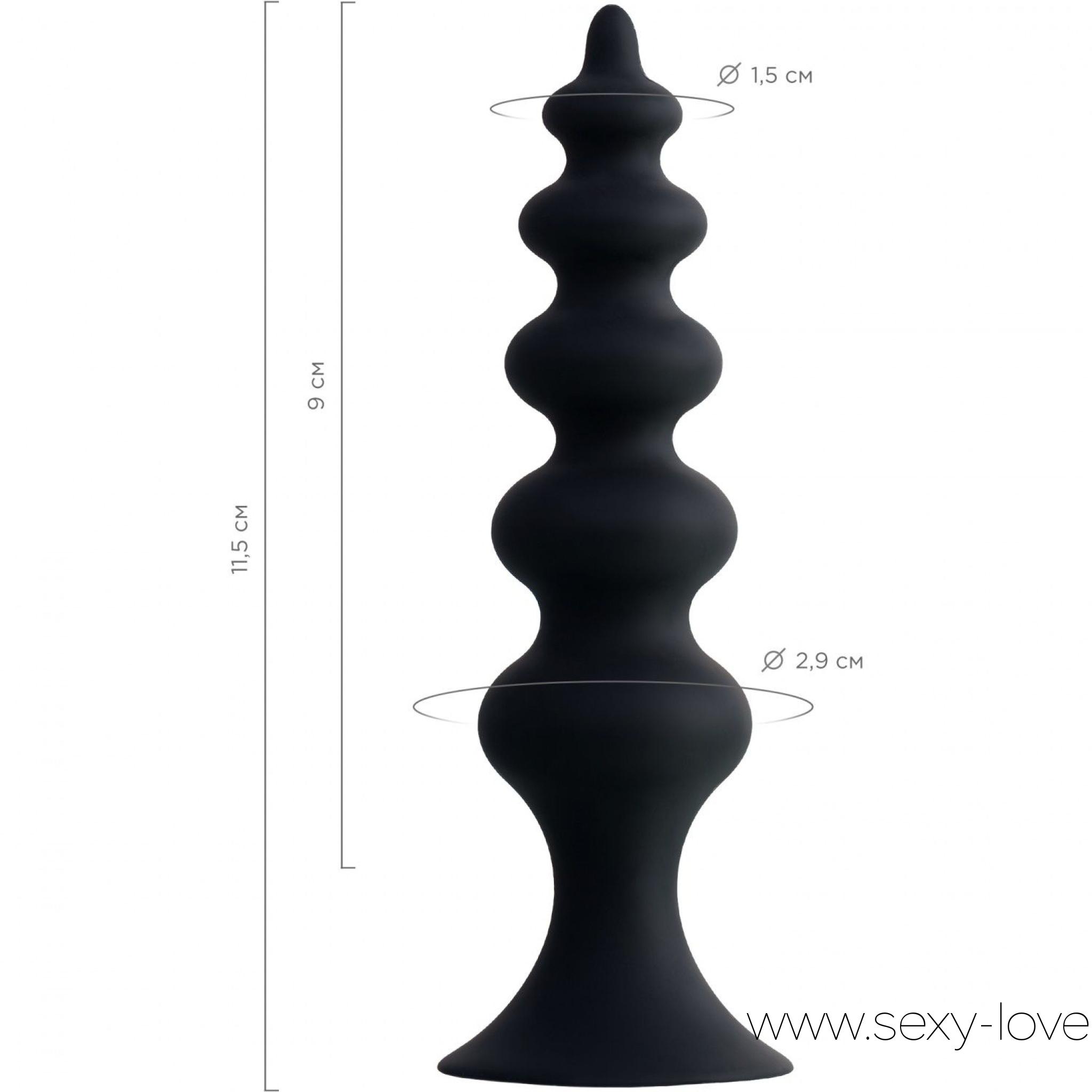 Черная анальная елочка на присоске, общая длина 11.5 см, максимальный диаметр 2.9 см