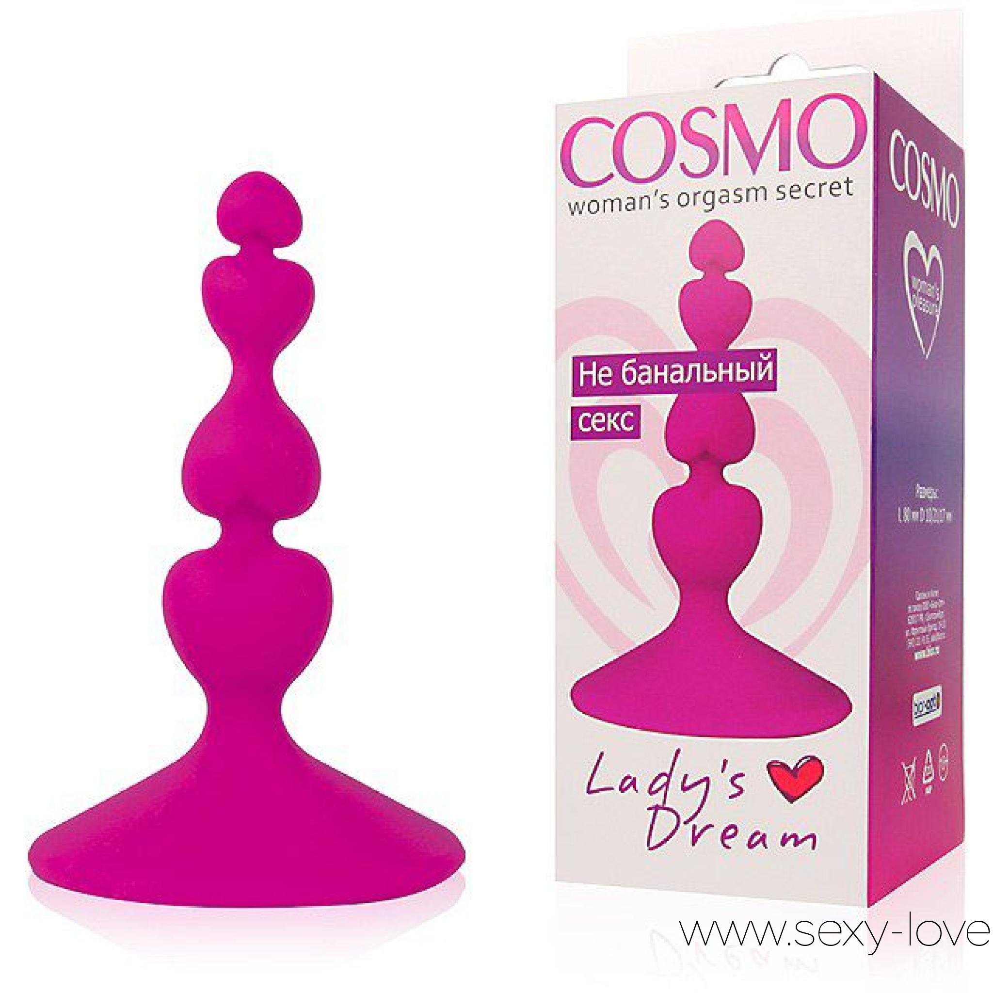 Анальная втулка-елочка с присоской Cosmo, цвет розовый, длина 80 мм, диаметр 10x21x17 мм