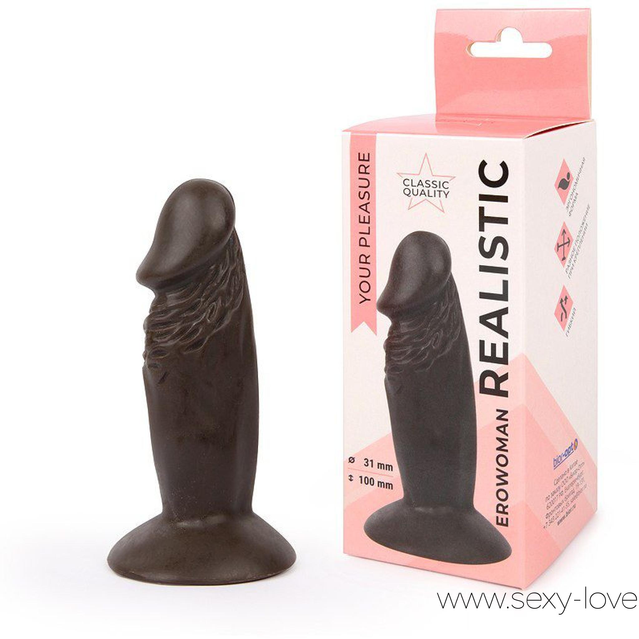Небольшой рельефный фаллос на присоске, цвет коричневый, Erowoman