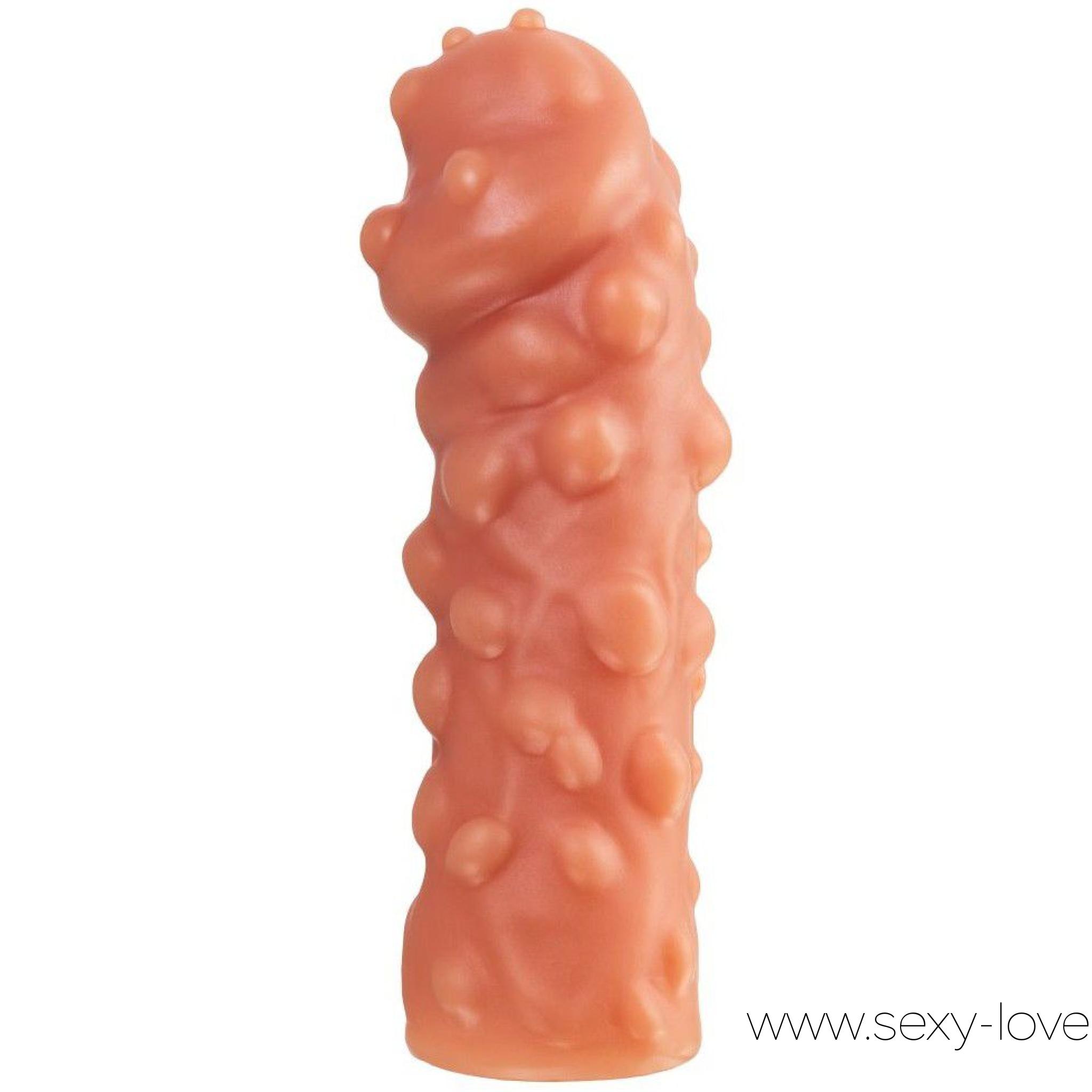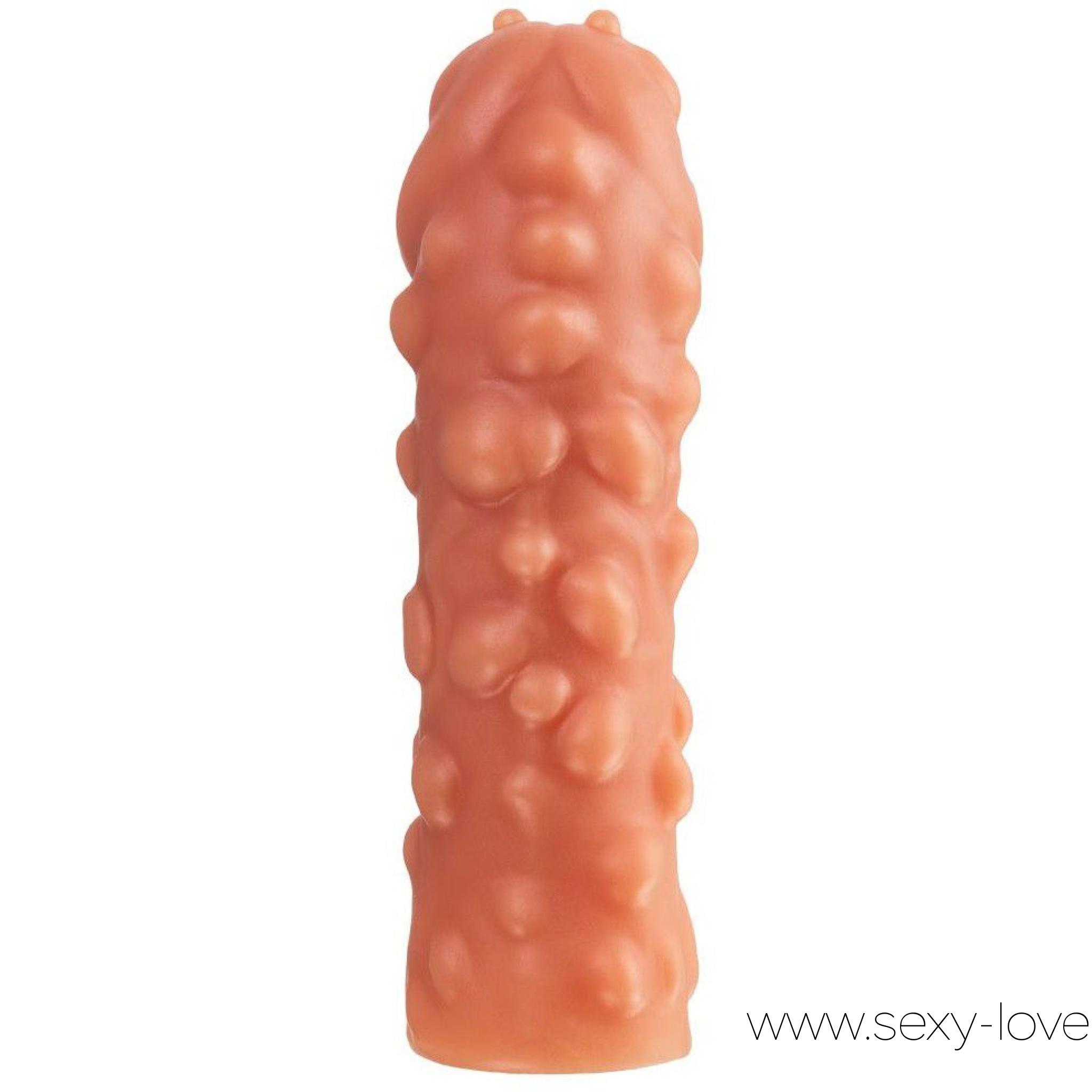 Увеличивающая насадка на член со стимулирующими пузырьками, телесный