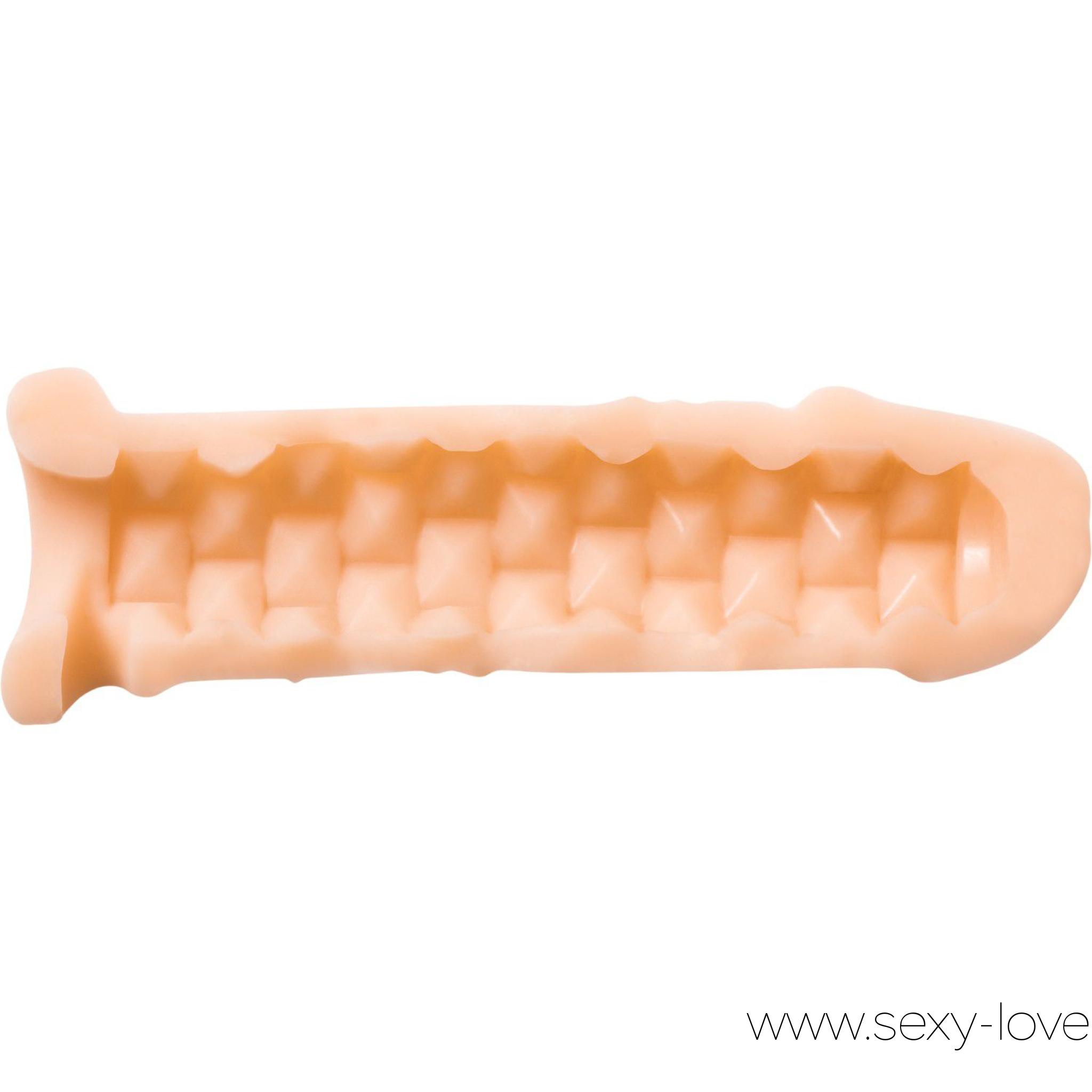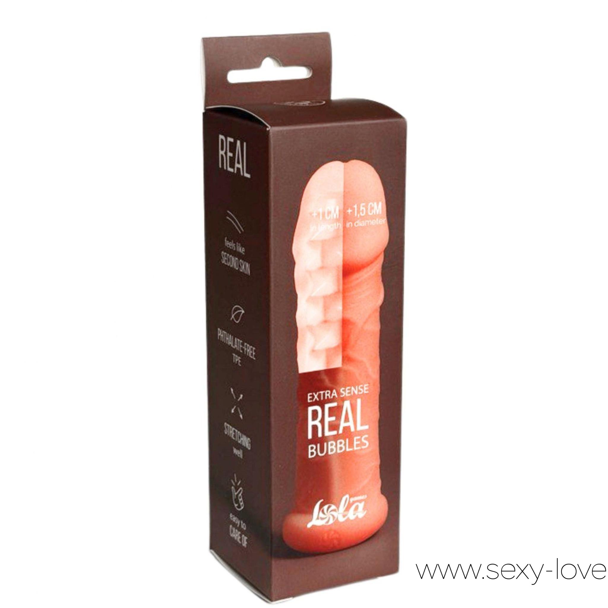 Фаллоудлинитель с двусторонним рельефом «Real Extra Sense Bubbles» с кольцом для мошонки, цвет телес