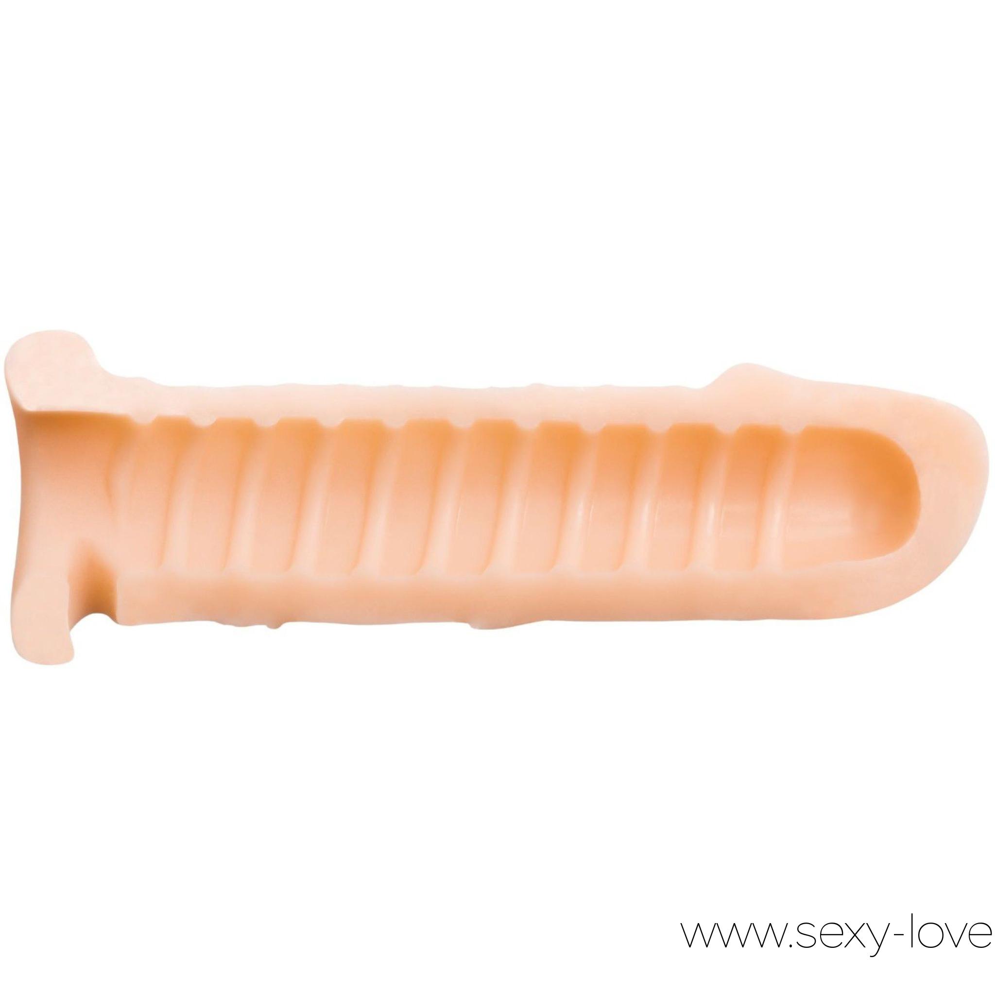 Насадка для пениса The Real Extra Size сделает пенис длиннее на 3 см благодаря встроенному удлинителю и диаметр больше на 1.5 см.