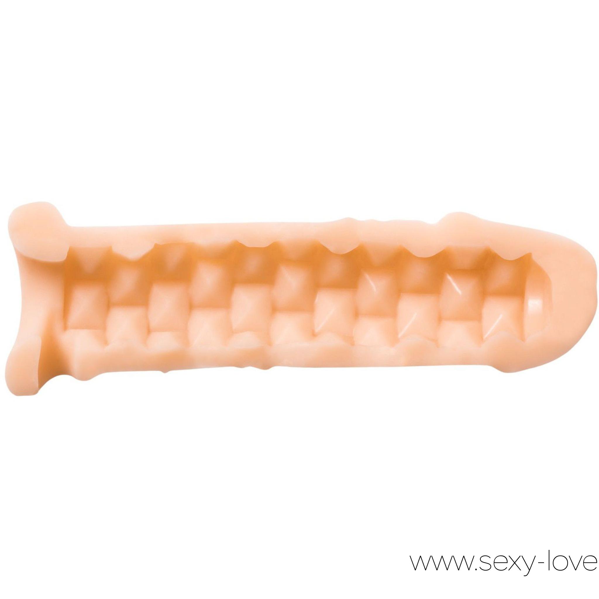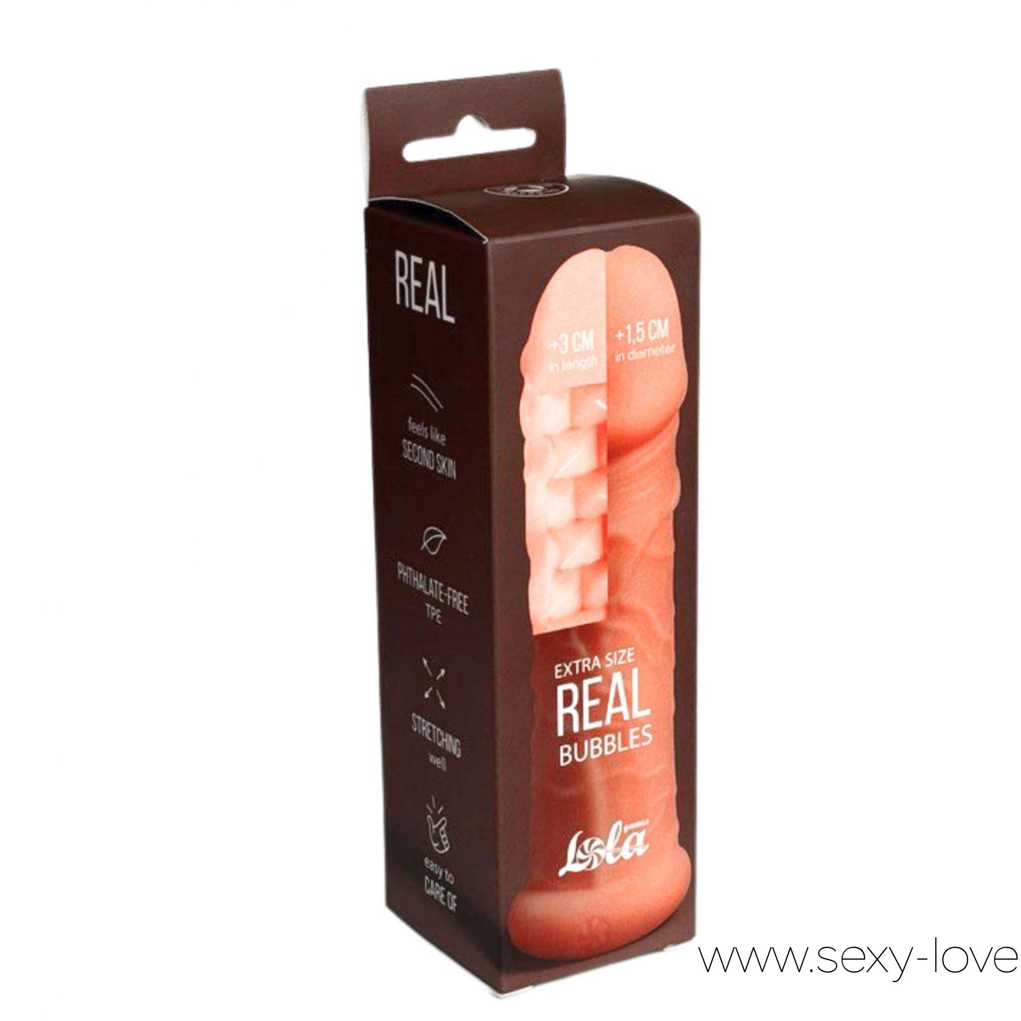 Фаллоудлинитель с двусторонним рельефом «Real Extra Size Bubbles» с подхватом мошонки, цвет телесный
