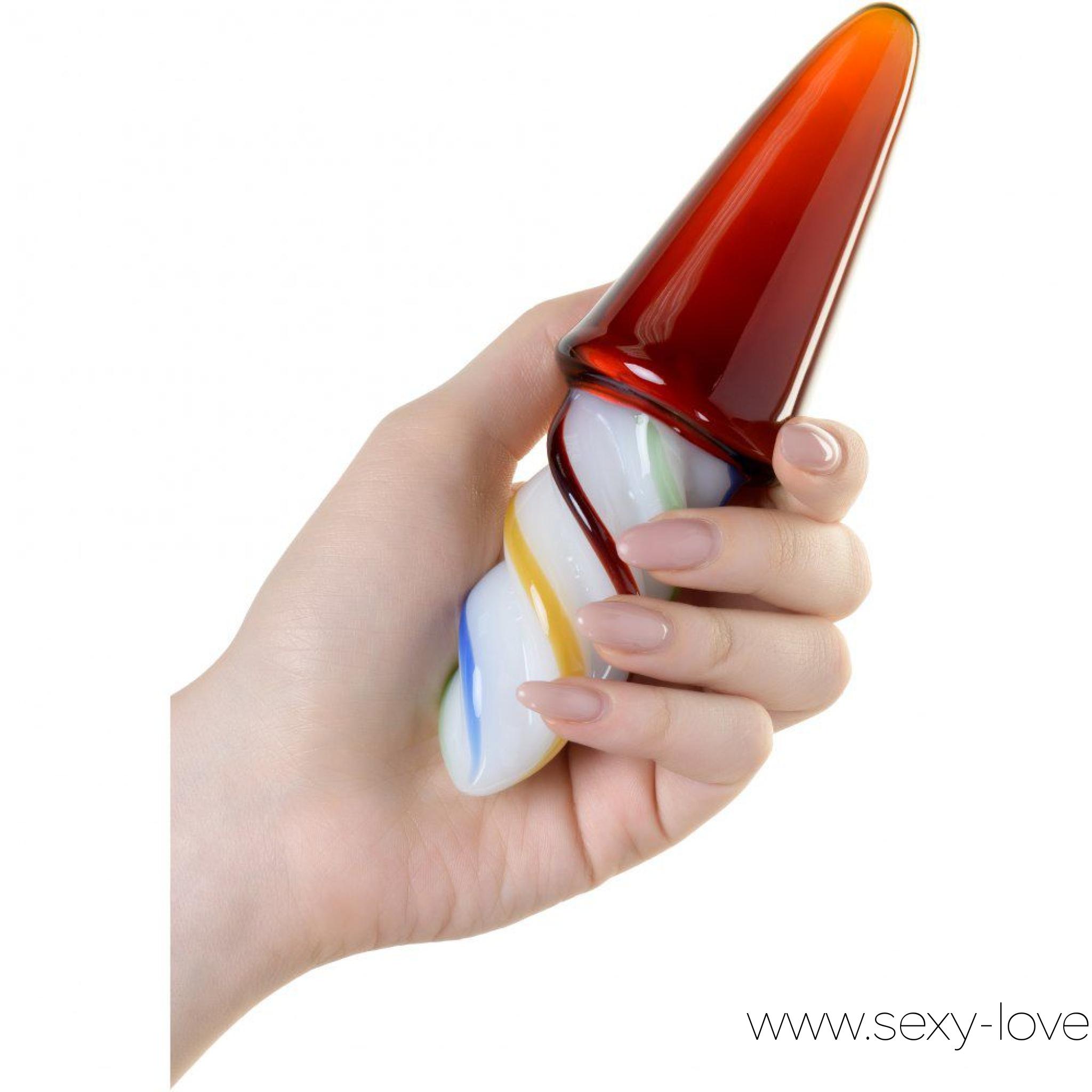 Анальная втулка из стекла со спиральной ручкой, цвет мульти