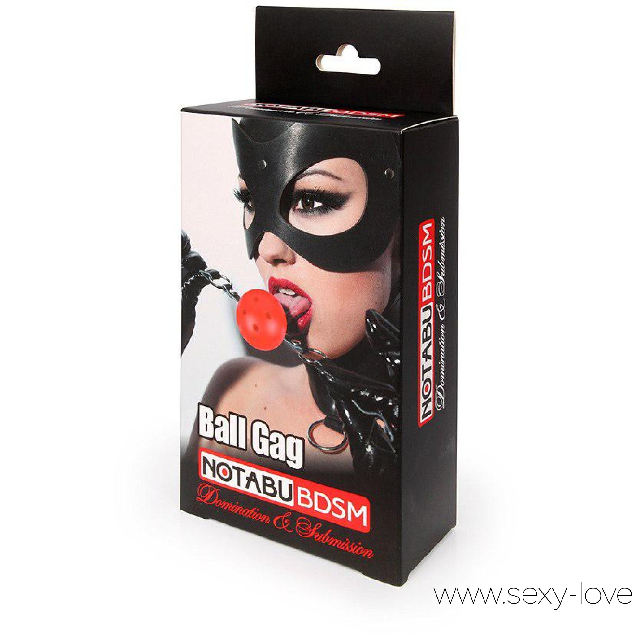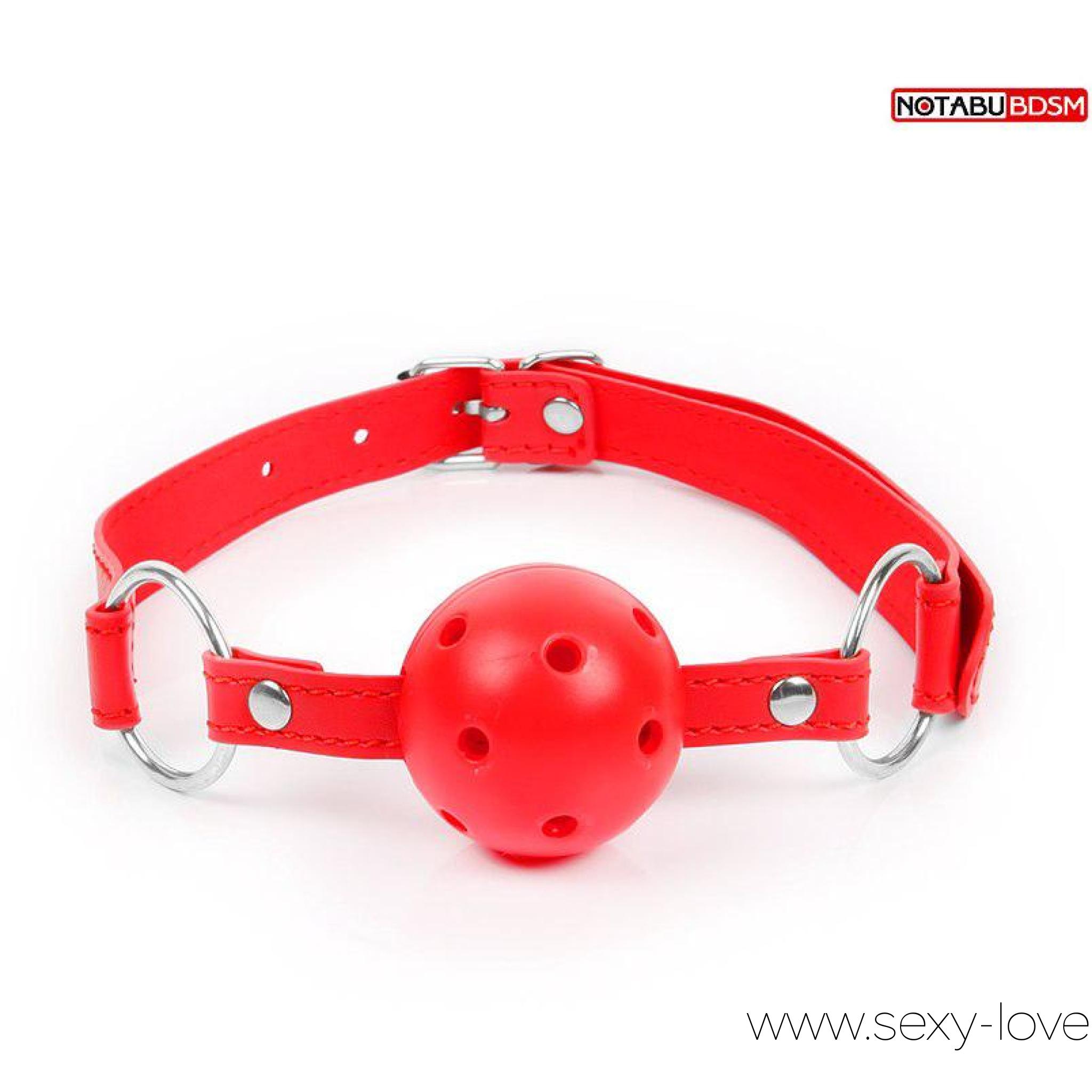 Кляп-шарик с отверстиями для дыхания на ремешке с кольцами, цвет красный