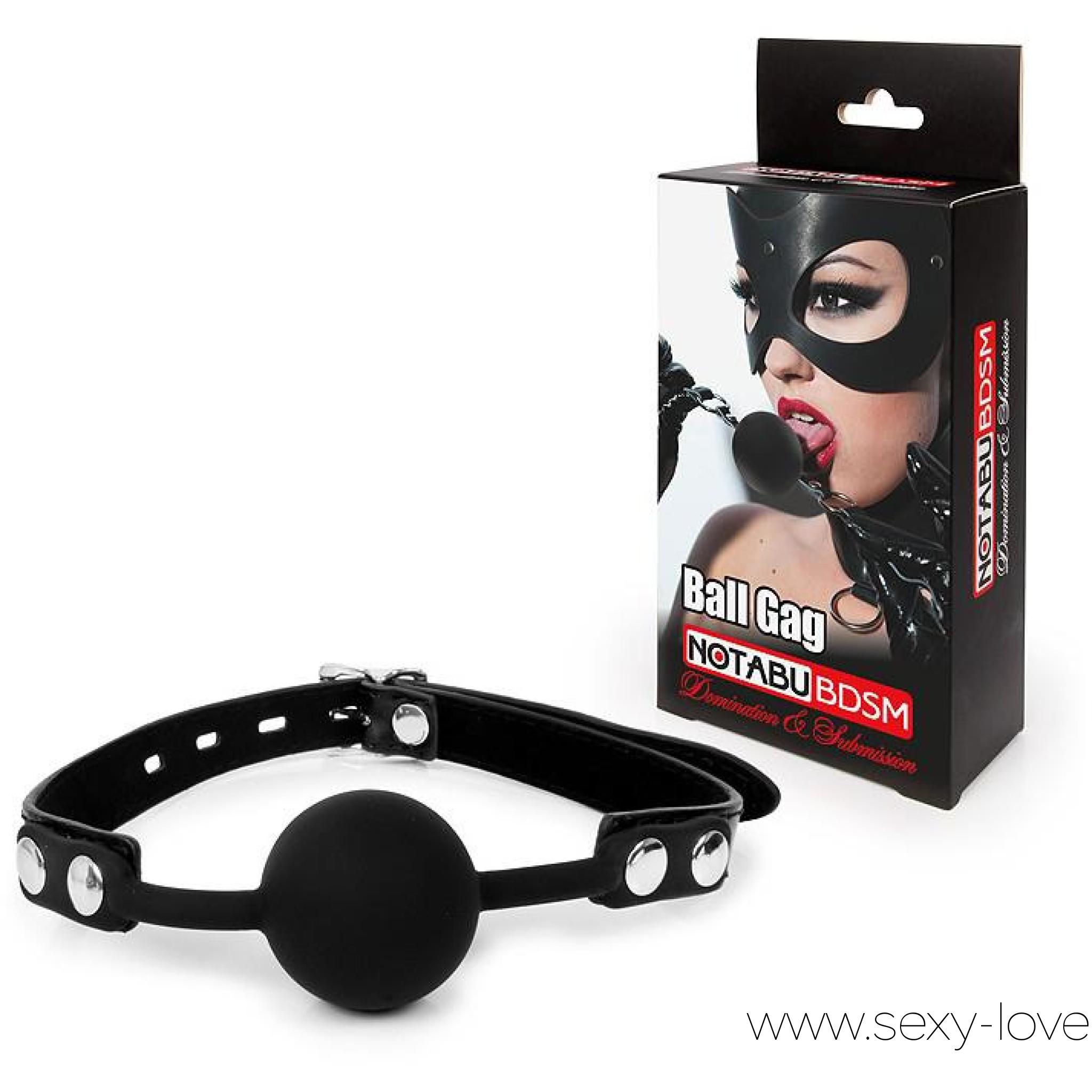 Черный кляп-шарик с регулируемым ремешком, диаметр 4 см