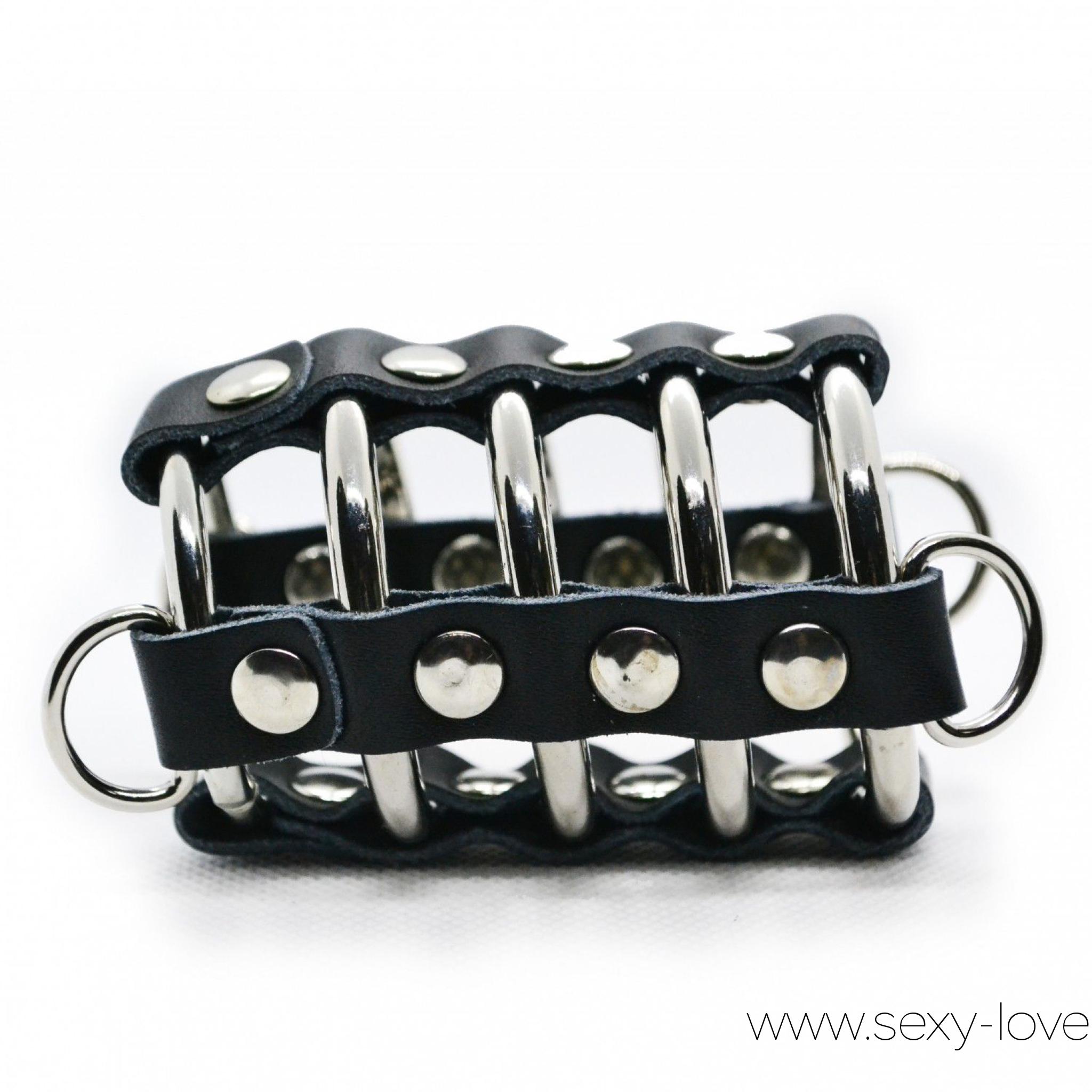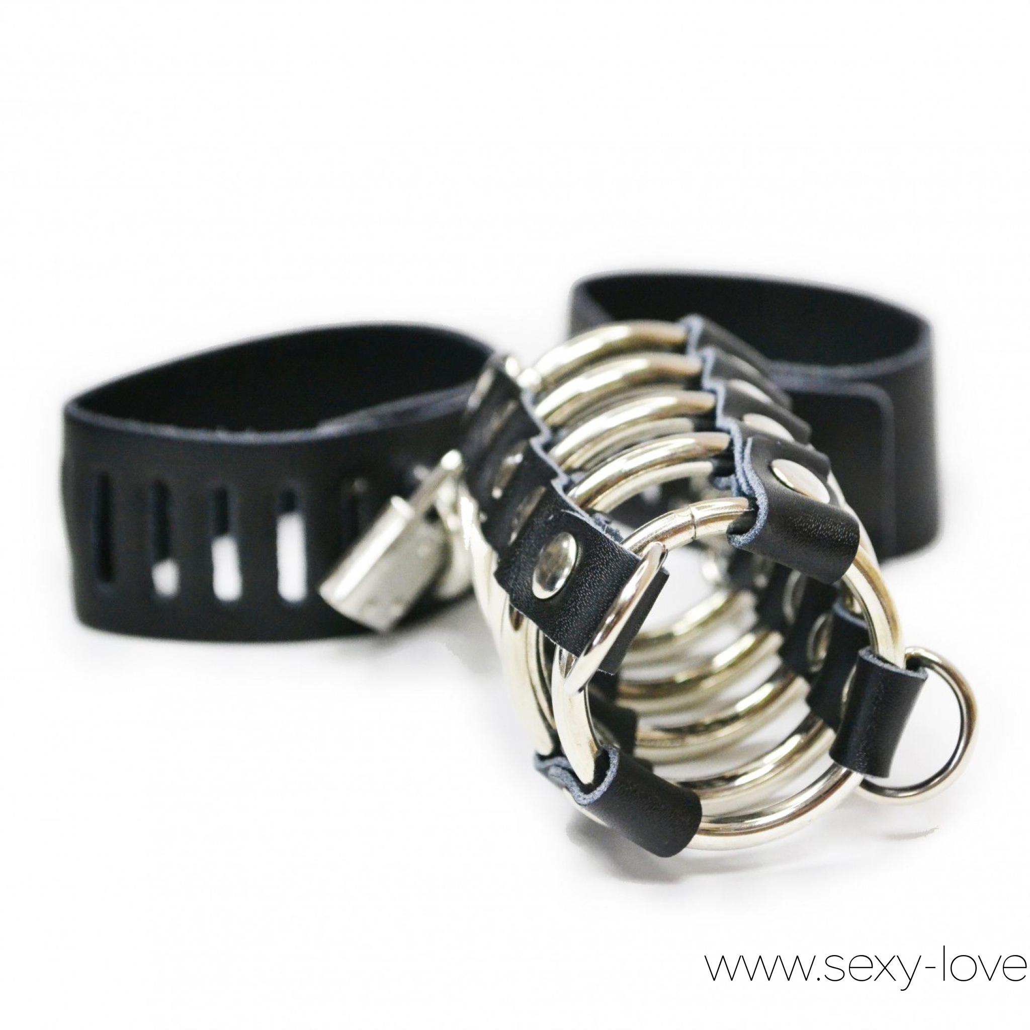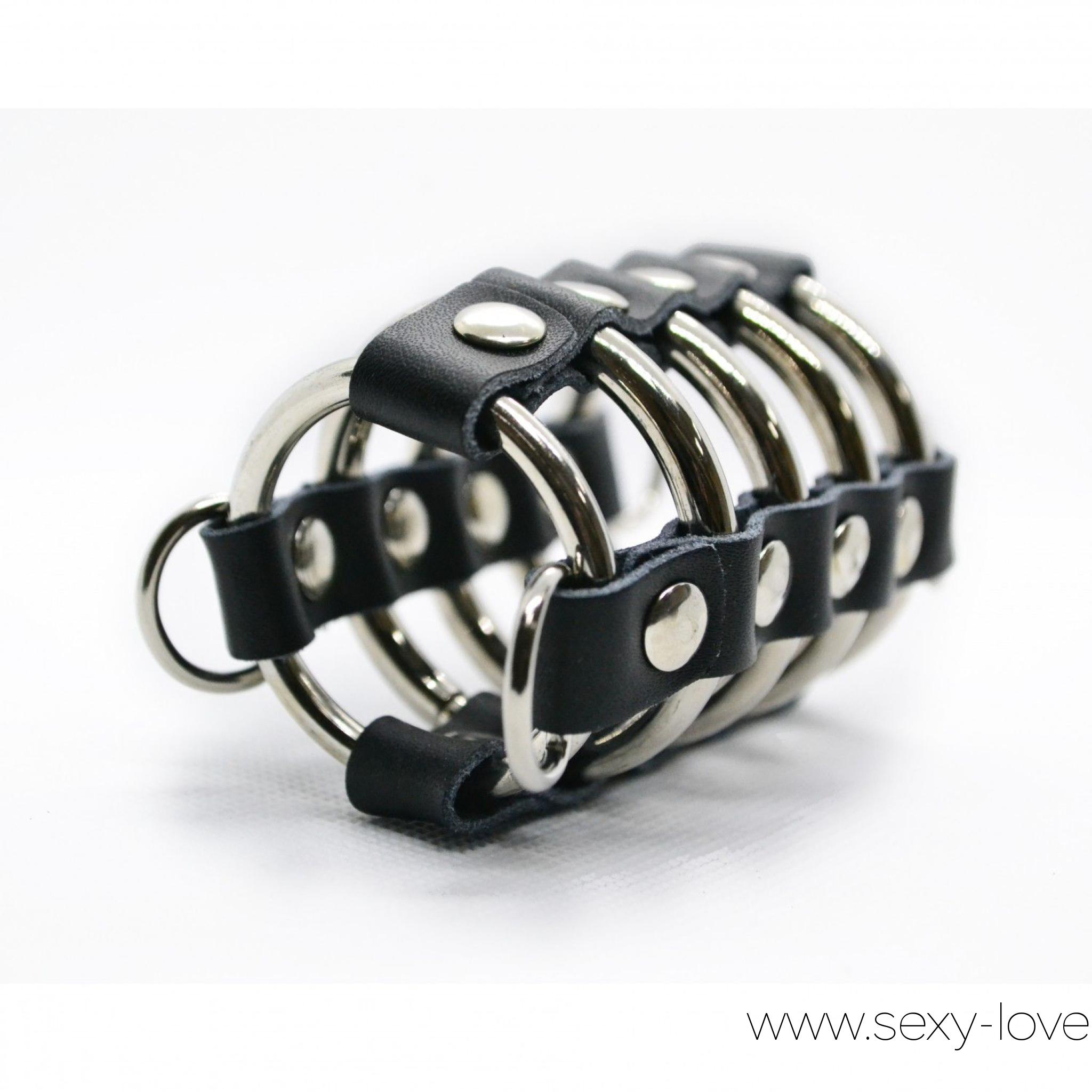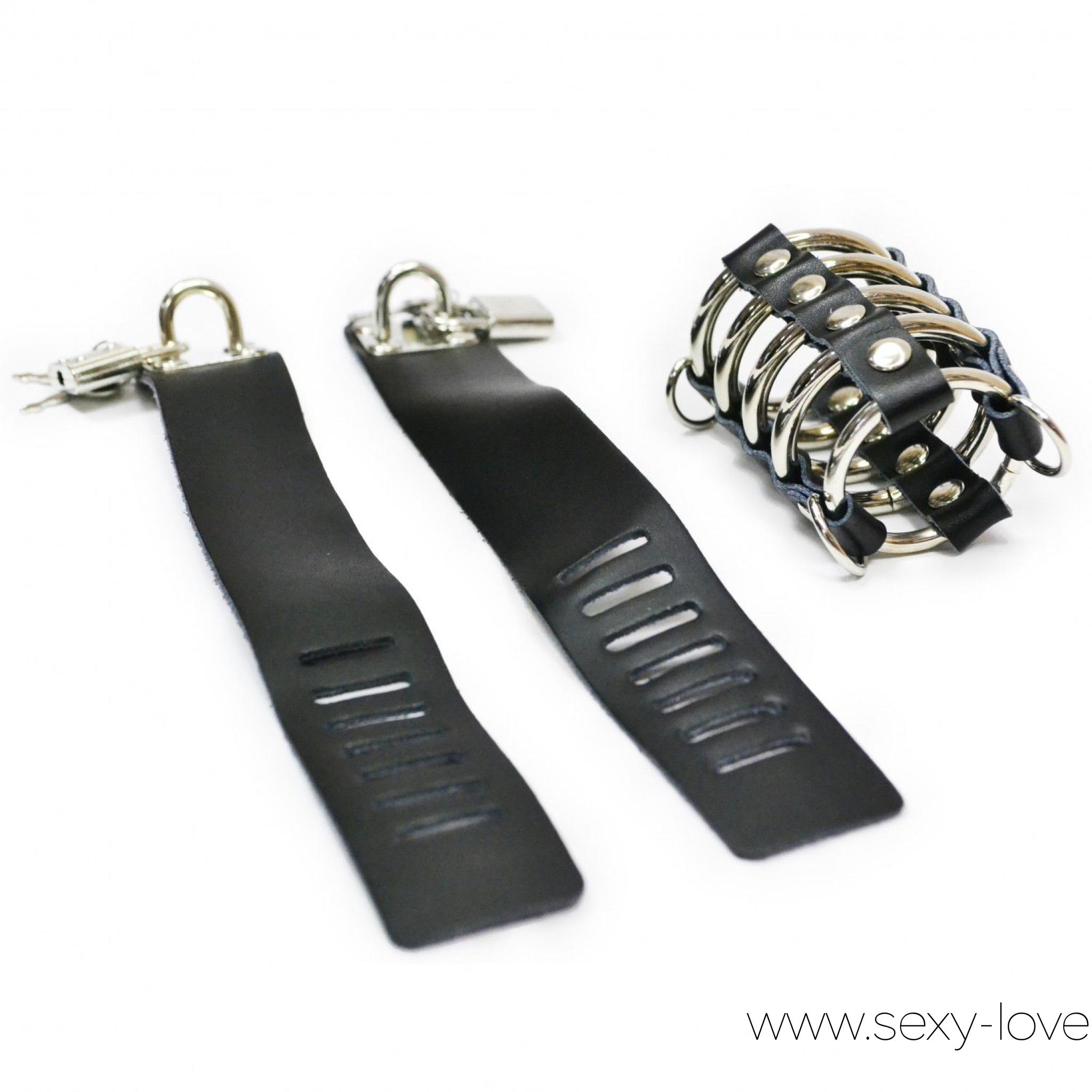 Кожаная бондажная сбруя на член и мошонку, цвет черный
